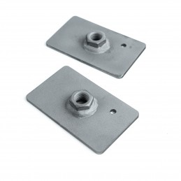 The plate is made of 3 mm thick steel (S355) and a nut with a 7/16" UNF thread that fits the eyebolts attached to the seat belts.