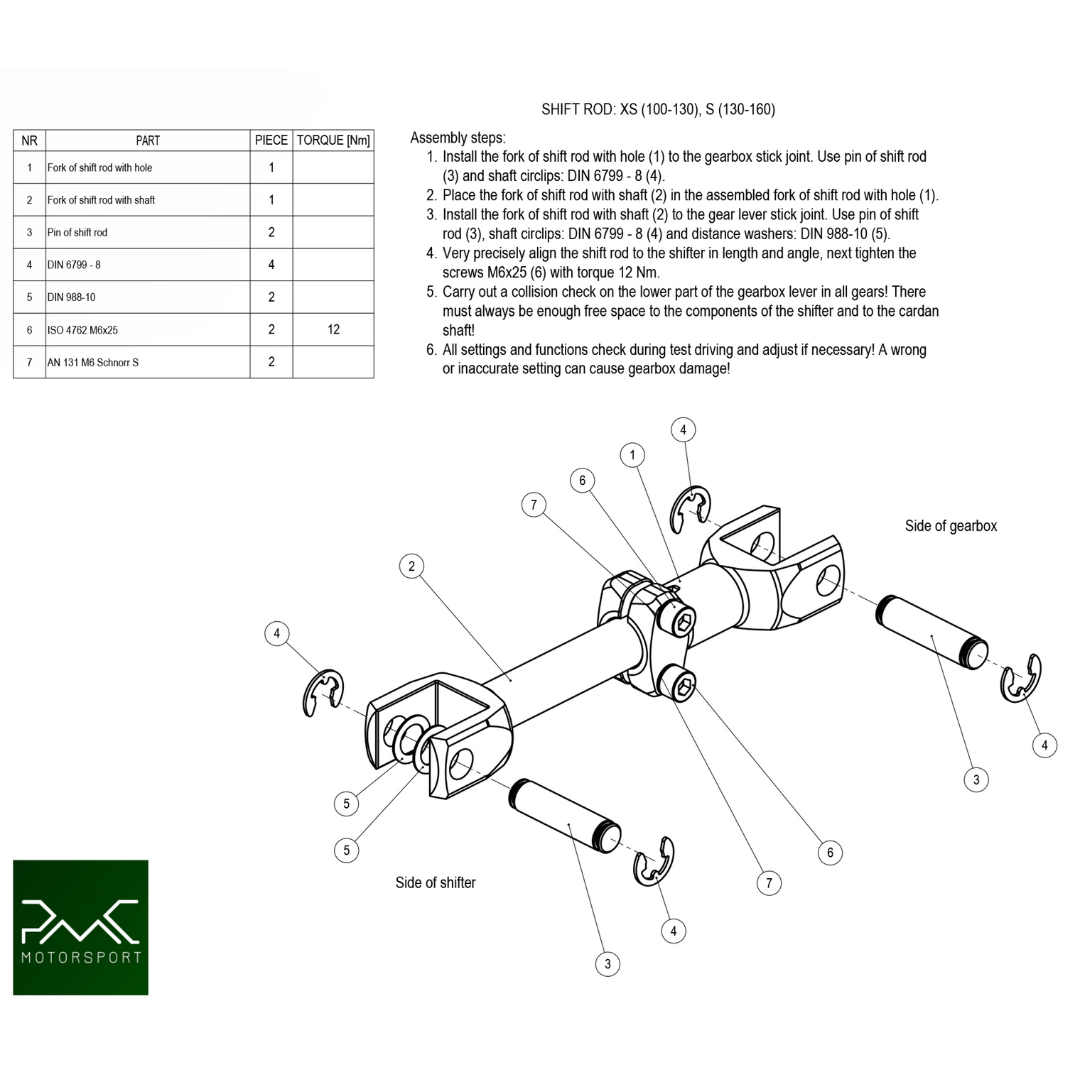 Discover the versatility and precision of the adjustable selector rod from PMC Motorsport, designed especially for engine and gearbox SWAP enthusiasts! This universal rod – also known as a linkage, connector, or guiding rod – is compatible with all BMW ZF and Getrag manual transmissions, including models like ZF: GS5-39DZ, GS6-37 DZ/BZ, GS6-53 DZ/BZ, and Getrag: 250, 260, 420.