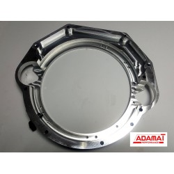 Complete flywheel with starter ring and trigger ring for crank sensor assembled in adapter plate