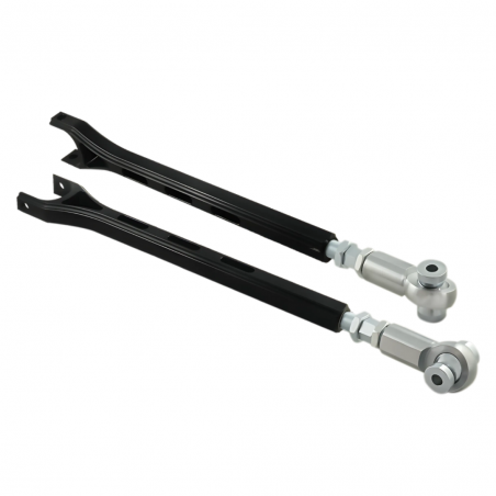 High-quality adjustable aluminium lower control arms specially designed for BMW E36, E46, and Z4. Equipping these adjustable arms will significantly enhance the handling of your BMW. Their versatility allows for any adjustment in the suspension geometry, encompassing negative, zero, and positive angles. This enables the adjustment of the suspension system to your own preferences and driving specifics, which is crucial for achieving optimal vehicle performance.