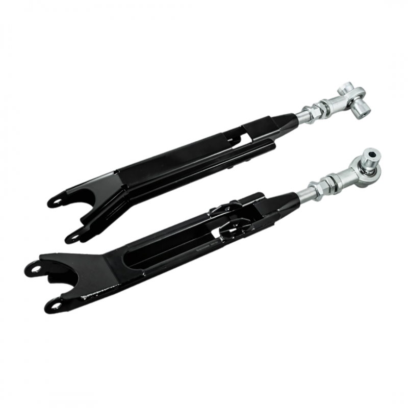 The lightest adjustable camber arms on the market — designed to improve handling, allow a wide camber adjustment range, and increase rigidity compared with stock control arms