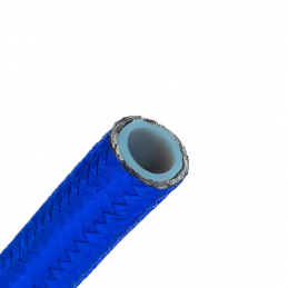 The core is made of high quality Teflon PTFE which doesn’t react with most of the chemicals such as oils, greases, gasoline, petroleum, alcohol (E85), brake fluid, steering system fluid etc. and thanks to that is widely used for fuel systems, including methanol and nitromethane, in lubrication, oil and cooling systems etc.