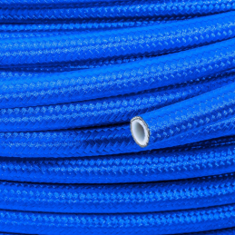 Steel braided Teflon cable (PTFE), additionally coated with blue nylon.