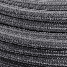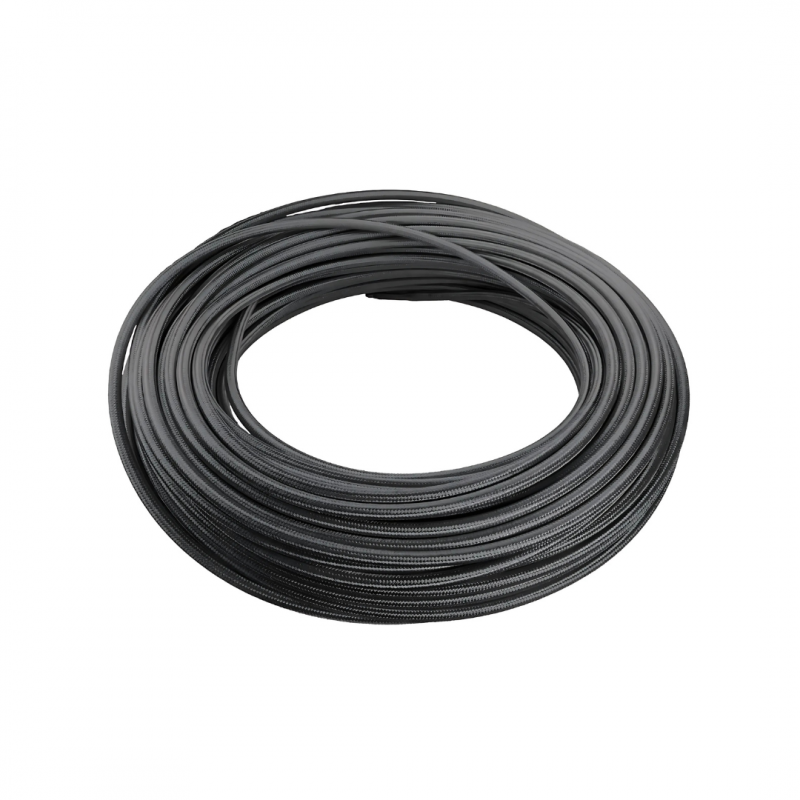 Steel braided Teflon cable (PTFE), additionally coated with black nylon.