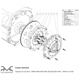 PMC Motorsport Lightweight custom aluminium flywheel Toyota JZ 1JZ 2JZ - BMW M57N2 ZF GS6-53DZ HGU HGK E9x 325D 330D 6-speed Diesel - 240mm / 9.45"