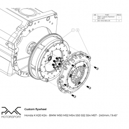 PMC Motorsport adapter kit (adaptor kit / set / adaption system / swap kit / conversion set / manual conversion / clutch kit) Honda K K20 K24 - BMW M50 M52 M54 ZF310 ZF320 S5D-250 5-speed / S50 S52 Getrag 420G 6-speed - 240mm / 9.45"
