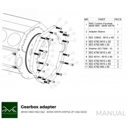 The adapter kit enables users connection of BMW V8 M62 S62 engine series with a very durable and easy-to-buy BMW gearbox. It is an ideal solution for motorsport as well as for people who want to change (convert) automatic gearbox (transmission) to manual.