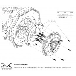 PMC Motorsport adapter kit (adaptor kit / set / adaption system / swap kit / conversion set / manual conversion / clutch kit) BMW B58 S58 - BMW N54 GS6-53BZ 135i 335i 535i 6-speed - 240mm / 9.45"