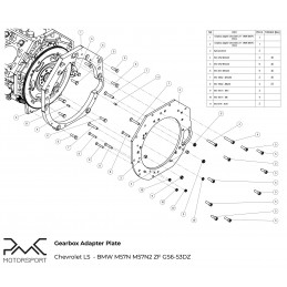 PMC Motorsport Adapter Plate (gearbox adapter / transmission adapter) GM Chevrolet V8 LS LSA LSX LT1 LM7 - BMW ZF310 / ZF320 / ZF GS5-39DZ / Getrag420G / ZF GS6-37DZ / ZF GS6-53DZ HGA