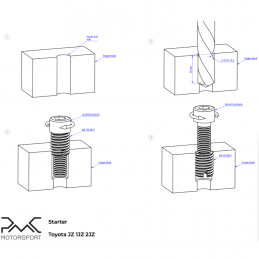 The starter remains OE Toyota 1JZ 2JZ (one mounting hole needs to be enlarged and a threaded insert included in the kit needs to be installed).