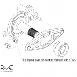Replace the original spherical pin (pivot pin) with the custom one from the kit.
