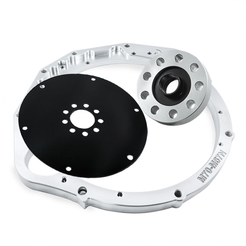 An adapter allowing the connection (swap / conversion) of a Toyota Lexus V8 UZ 1UZ 3UZ with a ZF manual transmission (ZF Friedrichshafen) used in BMWs. The perfect solution for amateur and professional motorsports