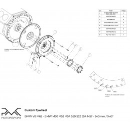 PMC Motorsport adapter kit (adaptor kit / set / adaption system / swap kit / conversion set / manual conversion / clutch kit) BMW V8 M62 - BMW M50 M52 M54 ZF310 ZF320 S5D-250 5-speed / S50 S52 Getrag 420G 6-speed - 240mm / 9.45"