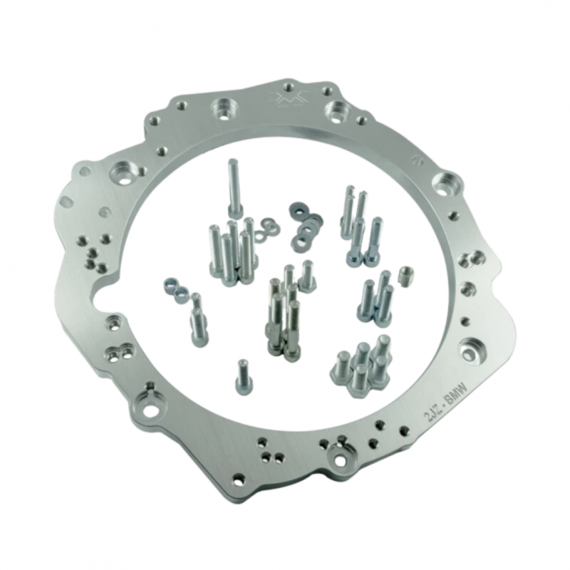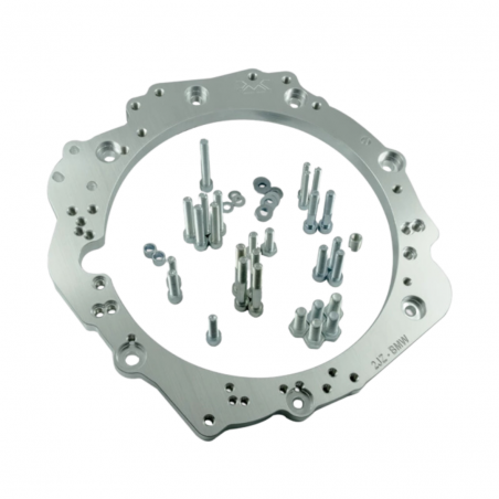 Aluminium adapter enabling the connection (mate / SWAP / conversion) of Toyota JZ 1JZ 2JZ engines (GE GTE VVT-i and non-VVT-i versions) with manual or automatic ZF (ZF Friedrichshafen) / Getrag transmissions from BMW. The adapter supports both popular manual transmissions such as ZF 5, GS5-39DZ, GS6-53DZ/BZ, and Getrag 420G, as well as modern ZF 8HP automatic or Getrag DCT DKG dual-clutch transmissions. It's the most universal kit available on the market.