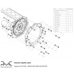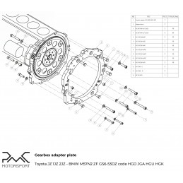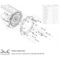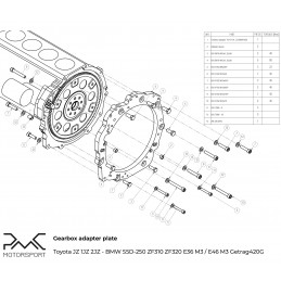 PMC Motorsport Adapter Plate (gearbox adapter / transmission adapter) Toyota Lexus V8 UZ 1UZ 3UZ - BMW F87 M2 / F80 M3 F82 / F83 M4 DCT GS7D36SG R6 / BMW N54 GS6-53BZ 335i 135i 535i