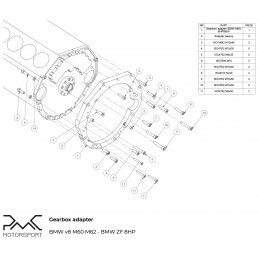 PMC Motorsport Adapter Plate (gearbox adapter / transmission adapter) Mercedes-Benz V8 M156 AMG - BMW ZF310 / ZF320Z ZF5 / ZF GS5-39DZ / Getrag 420G / ZF GS6-37DZ / GS6-53DZ HGA