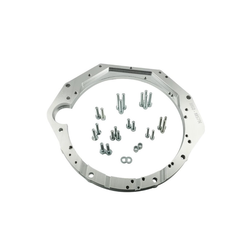 Aluminium adapter plate designed to mate BMW V8 M60 M62 S62 engine with the BMW M57N2 ZF GS6-53DZ 6-speed manual gearbox or ZF 8HP 8HP70 8HP75 8HP50 from BMW