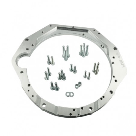 An adapter allowing the connection (swap / conversion) of a Toyota Lexus V8 UZ 1UZ 3UZ with a ZF manual transmission (ZF Friedrichshafen) used in BMWs. The perfect solution for amateur and professional motorsports