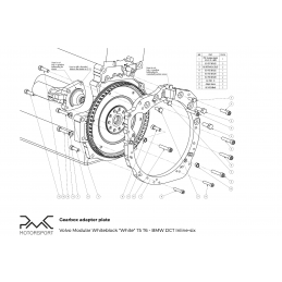 Are you increasing power or looking to switch from manual to automatic transmission? With the PMC Motorsport adapter, it's no problem. The gearbox adapter is designed to easily facilitate transitions, such as upgrading from a 5-speed to a 6-speed or from a manual to an automatic 8HP or DCT DKG transmission. Simply change the flywheel or converter adapter, and the gearbox adapter remains the same.