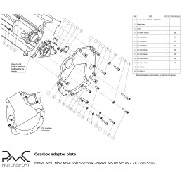 PMC Motorsport Adapter Plate (gearbox adapter / transmission adapter) Mitsubishi 4G63 - BMW M50 M52 M54 M57 S50 S52 S54 / ZF310 / ZF320 /GS5-39DZ / E46 M3 / E36 M3 / BMW ZF GS6-53DZ E90 330D E60 530D HGK HGU JGA HGD