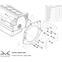 PMC Motorsport Adapter Plate (gearbox adapter / transmission adapter) Honda F20C F22C1 (S2000) - BMW ZF310 / ZF320 / GS5-39DZ / Getrag 420G / GS6-37DZ / GS6-53DZ / GS6-53BZ / DCT DKG GS7D36SG / ZF 8HP 8HP70 8HP75 8HP50 8HP51