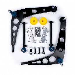 Adapters are milled on CNC machines, which gives a high quality finish and 100% matching of the adapter to the steering knuckle and pin ends. For E30 the adapters are made of the hardest aluminium acc. To Polish standards. The control arm is cut with a laser and has precisely machined holes for pins and stabilizer mounting (we recommend its assembly for better driving of the car in skidding, especially when the suspension is not "concreted").