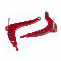 This kit guarantees an increase in steering angle of up to 70 degrees, alters the characteristics (value) of the Ackermann angle, and allows for quick adjustments without the need to remove any components.