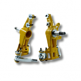 The steering knuckles are supplied with mounting bushings for M12 and M14 coilover mounting bolts.